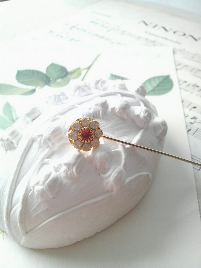 ヴィンテージスワロフスキー、愛らしいデイジーモチーフでお作りしましたピンブローチです。