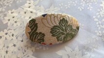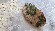 アンティークの帯地を使い、ふわふわの芯をくるんで