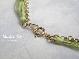 金属パーツは、ワイヤーにk14gfを使用し、チェーンや金具は23金合金錬金を使用しています。
