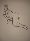 Drawing naked woman by charcoal. The size is 51.5 x 36.4cm.
