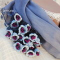 立体モチーフは、シルク糸をトゥーオヤ(鍵編み)で編んだもの。