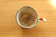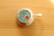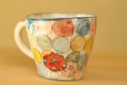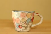 粉引き手びねりカラフルドットりすときのこのカップ。