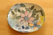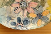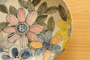 信楽の白土に白化粧を施しカラフルにお花を描きました。