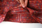 生地幅の都合上ダメージを避けられないときは、裏から補修をしたり、糸で繕っています。