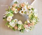 白いバラとマーガレット コットンリボンをそえて:wreath