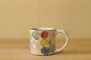 信楽の赤土にろくろで仕上げた生地にカラフルにドットを絵付けしました。