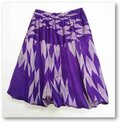 紫色の地にグレーで矢羽柄が染められた銘仙をリメイクした