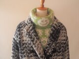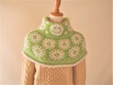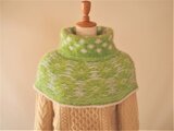 このネックウオーマーはアップルグリーンとオフホワイトの2色で編んでいますが