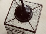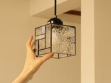 いろいろな模様のクリアガラスをパッチワークのように組みあわせたペンダントライトです。模様ガラスのいろいろな表情を楽しめます。シンプルなデザインなので、どんなインテリアにもなじみやすいと思います