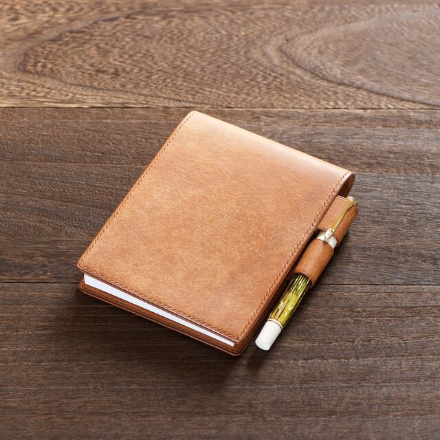 皮の色味(コッチネーラ)といい、手にしっとりとなじむ手触りといい、最高に気に入ってしまいました。 早速A7LIFEノートに装着。贅沢すぎる♪ 丁寧なお仕事、本当にありがとうございました!