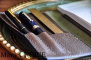 お品無事到着いたしました。 ラッピングもとてもおしゃれで、ワクワクしながら開封させていただきました。 想像通りとても素敵な色の革で、手触りも良く、これから手に馴染んでくるのが楽しみです。 ペンを挟んでもシルエットが崩れず、おさまりが良いのも気に入っています。 長く、大切に使わせていただきます!