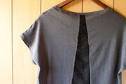 背中を美しい蜘蛛の巣柄のチュールレースで切り替えたプルオーバーです。前から見るととってもシンプル。でも振り向くと背中にはドキッとするような蜘蛛の巣。