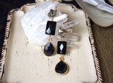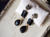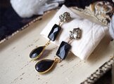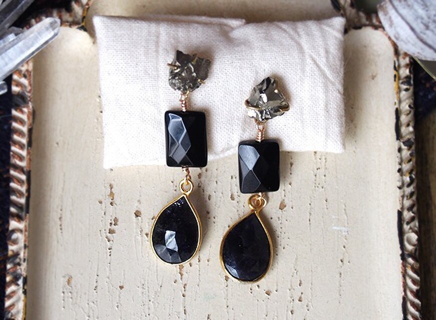 素材:パイライト・オニキス・サファイア・シルバー(石枠/ゴールドプレート)・K14ゴールドフィルド(ピアス金具)