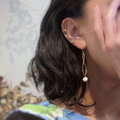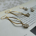 葉っぱモチーフのシルエットパーツと変形淡水パールのピアス。