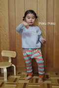 オレンジとミントのボーダーがパッと目をひくかわいいサルールパンツです。