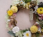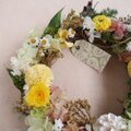 たんぽぽの明るさとナチュラルさをテーマにリースにしてみました。また、珍しいセイタカアワダチソウのプリザーブドフラワーが入っています。