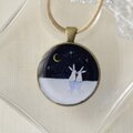 恋人うさぎを描いたオリジナルイラスト(原画)を樹脂でとじこめました。