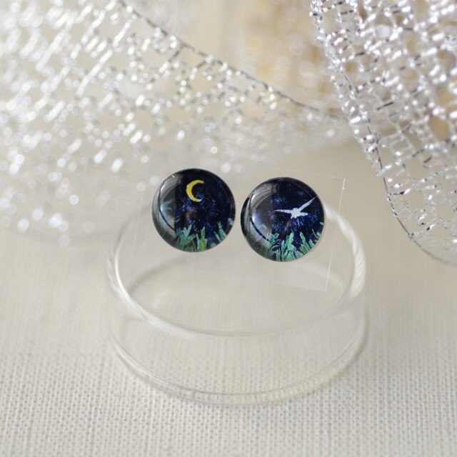 手描きのオリジナルイラストをレジンで閉じ込めたピアスです。