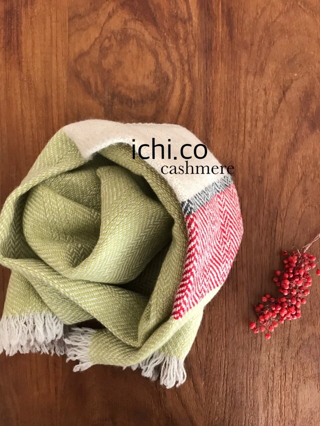 カシミア100%の糸で織り上げました。