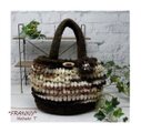 アイボリーからこげ茶までのやさしい色の毛糸をかぎ針で編んだ、ナチュラルテイストの手編みバッグです。