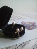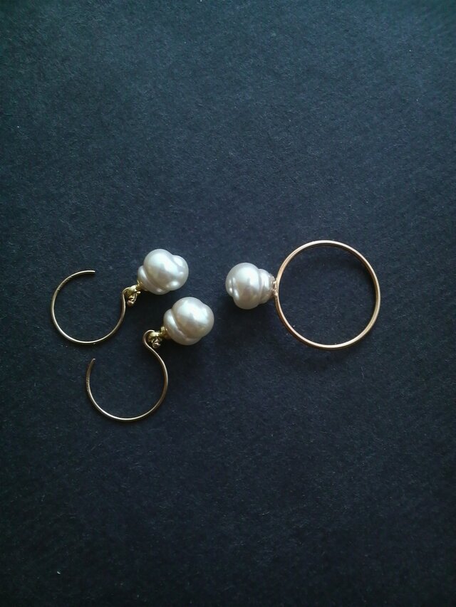 Japanヴィンテージの美しいSwirlグラスパール(約8ミリ)でお作り致しました14KGF指輪と、14KGFピアスのSetです。