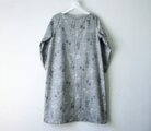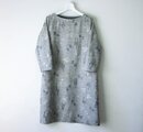 昭和にかけて作られたと思われる紬のの着物を丁寧にほどき、シンプルなワンピースを作りました。三角形のように見えるゆったりとしたシルエット。