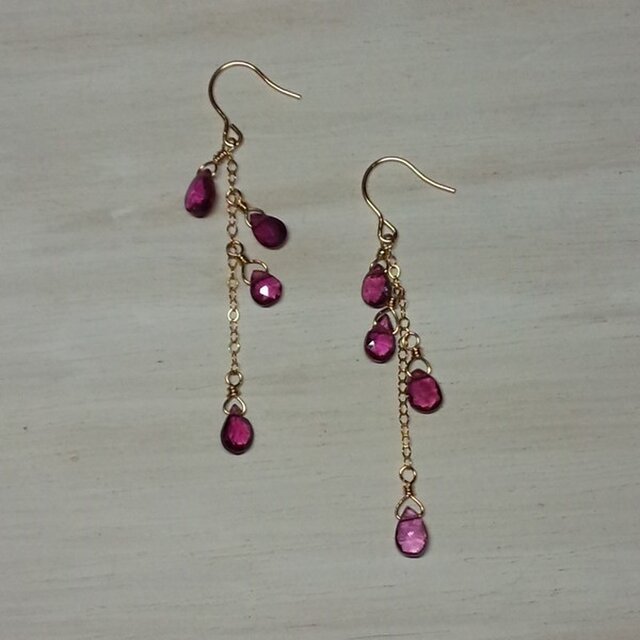 宝石質のペアシェイブブリオレットカットのロングピアスデス♡