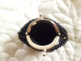 地色のビーズはブラック(黒色)で、丸大ビーズで足跡を7つづつ編み込んでいます。