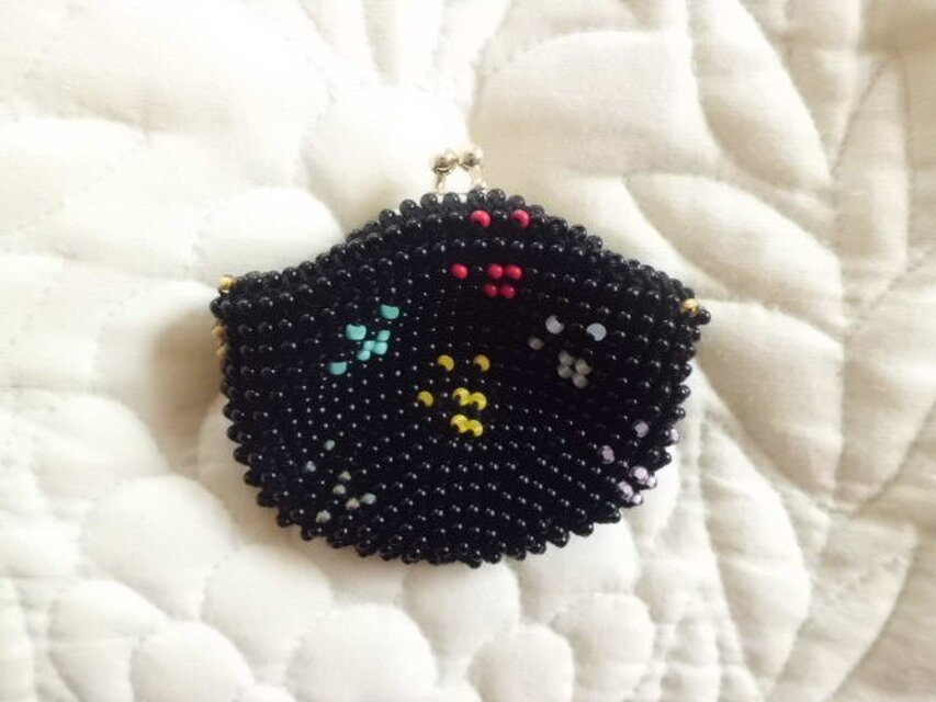 ビーズのがま口で、すべてビーズを編みこんでいます。