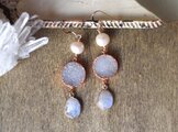 ドゥルージークォーツとロイヤルブルームーンストーンのピアス