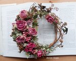 ゆるく丸めた葡萄蔓をベースに2色薔薇やペッパーベリーををあしらった和風テイストなWreathです。アンティーク&セピアになりまで長くお楽しみください。