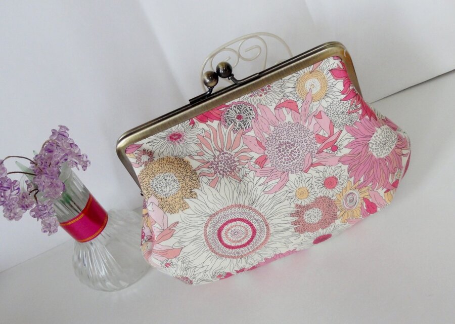 リバティ タナローン スモールスザンヌ(ピンク&ベージュ)で作りましたがま口ふっくらポーチです