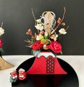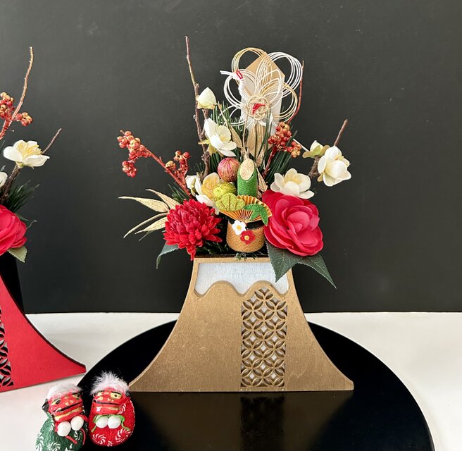 縁起の良い富士山の器にいつまでも美しいつばきや松のお正月アレンジ