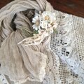 オフホワイトに染色したビロードのデージーやすみれなどとレースのりぼんなどを合わせた小さなコサージュです。