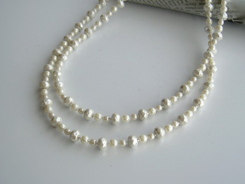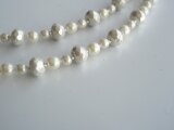 ボタンカットと言われるベネチアンビーズと淡水パールを小さなシードビーズで一粒ずつ繋ぎました。シンプルですが、ちょっと動きがある上品なロングネックレスに仕上がりました。