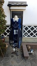 絵がすり、他いろいろなかすりをパッチしたワンピースです。