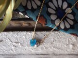 原石のアパタイトとグレーパールのネックレス