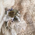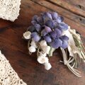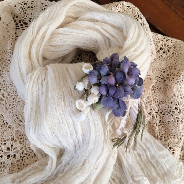 すずらんとすみれにレースなどを合わせてクリップ付きのコサージュに仕立てました。
