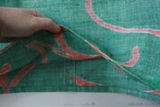 生地幅の都合上ダメージを避けられないときは、裏から補修をしたり、糸で繕っています。