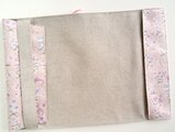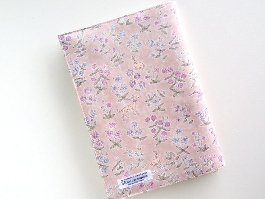リバティの人気生地、ミルフルール Mille Fleurs(ライトピンク)とハーフリネンの生地でA5本サイズのブックカバーを作りました。