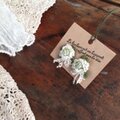 モチーフはオフホワイトやモスグリーンに染色し制作した白詰草とクローバーのお花です。