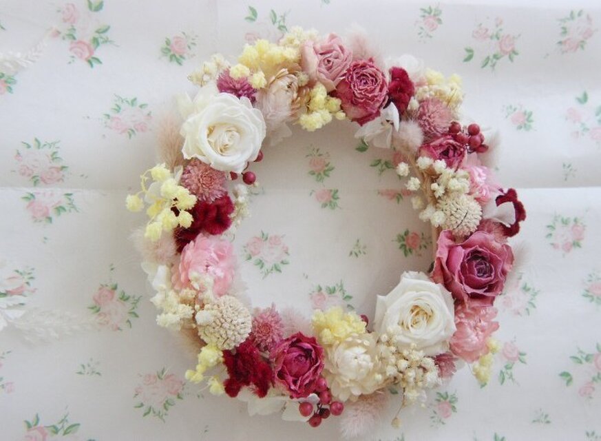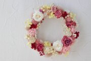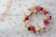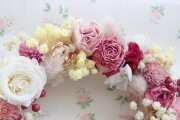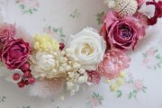*花材:プリザーブドフラワー(ばら、白・ピンク・かすみ草、二種類・カイガラソウ