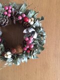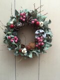 赤い木の実がたくさん使われ緑の葉っぱとのコントラストがとてもセンスの良いリースで一足先にクリスマスを迎えた気分になりました.