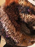 様々な毛糸を織り交ぜた 手編みのニットをプラス。