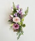 ナチュラルな木箱に アーティフィシャルフラワーの華やかな壁掛け飾り