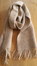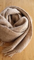 やわらかな2種類のベージュの組合せでヘリンボーンに織り上げたマフラーです。