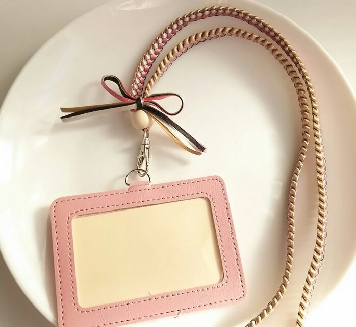 リボンストラップ☆ネームホルダー☆ピンク