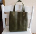 【新作】マチありミニトートバッグ クロコ型押し革に金色カシメがアクセント