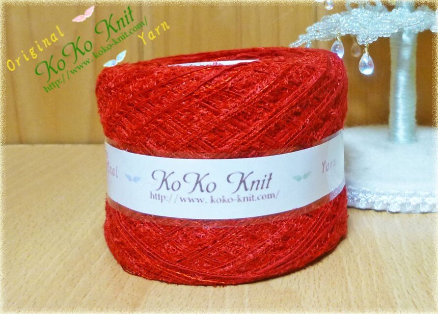 §KKK§ 心~気持ち~1玉45g 赤 フェザー、コットン、引き揃え糸、毛糸 オリジナル編み糸