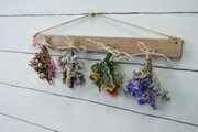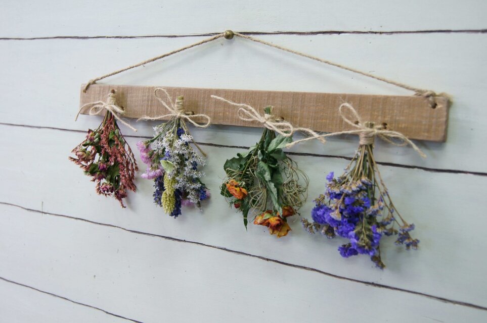 自家製ドライフラワーを古材風に加工した板にセットしました。
